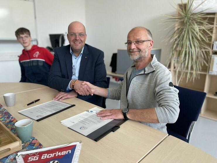 Von links: FSJler Moritz Krapp, Bernd Reining (1. Vorsitzender SG Borken), Ansgar Schmeier (Koordinator Ganztag JNG)