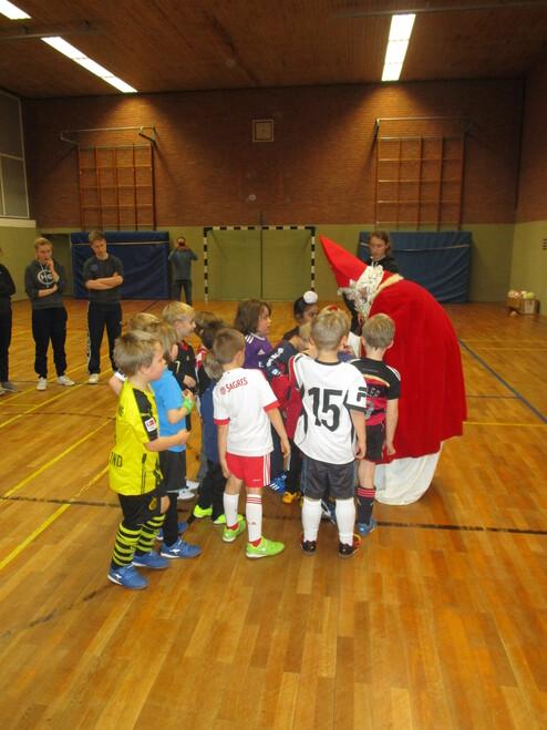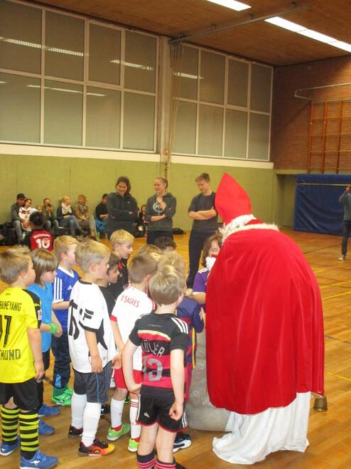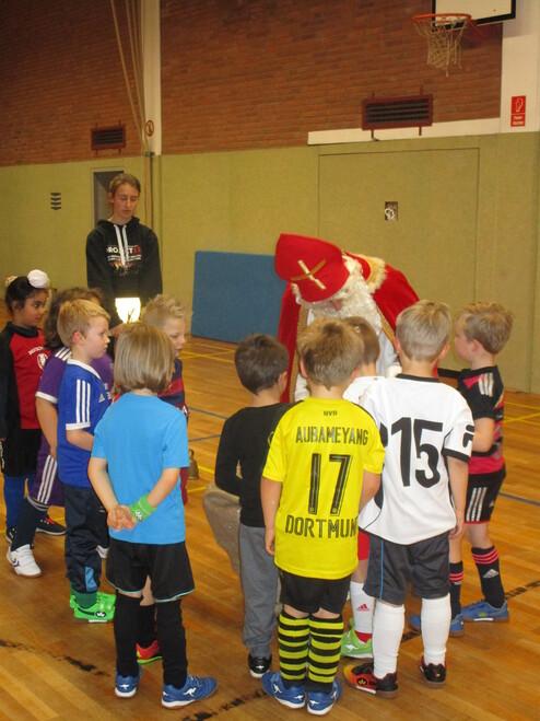 Hohen Besuch bekamen unsere G-Jugendlichen der Ballschule am 8. Dezember 2017. Niemand anderes als der Nikolaus höchstpersönlich schaute bei uns beim Training in der Duesberghalle vorbei und verteilte fleißig Schokolade, nachdem die Kinder artig gesungen und ein Gedicht aufgesagt hatten. Wir hatten nach den Feierlichkeiten Gelegenheit, den fußballbegeisterten Nikolaus kurz zu interviewen.