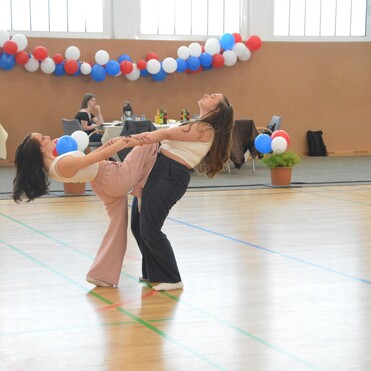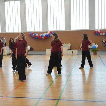 Das herrliche Frühlingswetter außen und die bunte Dekoration innen schufen gemeinsam mit begeistertem Applaus und Anfeuerungsrufen von Lehrern, Eltern und Gästen eine freundliche und aufgeheizte Atmosphäre. Die jungen Tänzerinnen und Tänzer präsentierten eindrucksvolle Choreografien in Tanzstilen wie Hip-Hop, Jazz, Modern Dance, Contemporary, Video-Clip Dancing, Schautanz, Standard- und Lateinamerikanische Tänze bis hin zu Schleiertanz.