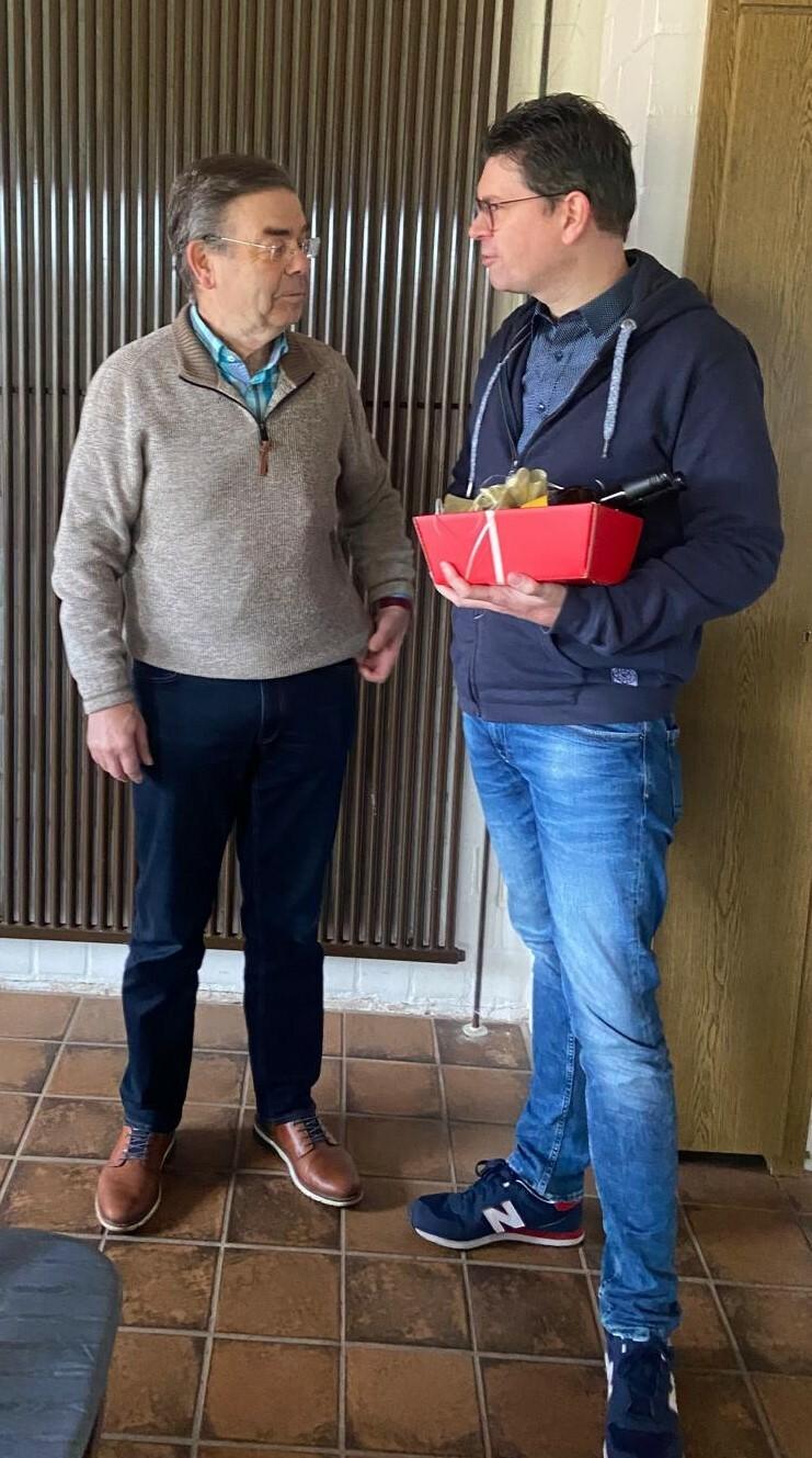 Da Arno Becker seine abwechslungsreiche, langjährige und erfolgreiche Tätigkeit als Sportwart nicht mehr ausführen möchte, bedankte sich Peter Rademacher mit einem Präsent für die langjährige, großartige Zusammenarbeit bei Arno.