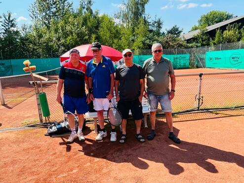Am letzten Spieltag hatten die Herren 65 4er der Bezirksklasse (v.l.: Detlef Steiner, Thomas Benning, Ilhan Alkis und Hans-Berd Nienhaus) die Spieler des TC Nordwalde 1921 1 auf ihrer Anlage in Borken zu Gast. Die Punkte für unsere Mannschaft holten im Einzel Uwe Martin und Siegfried Werner, im Doppel Wolfgang Steiner mit Arno Becker und Detlev Steiner mit Thomas Benning. Damit steht unsere Mannschaft am Ende der Meisterschaft auf dem guten zweiten Platz!