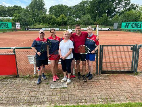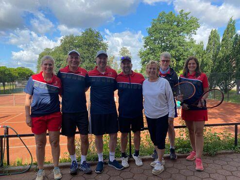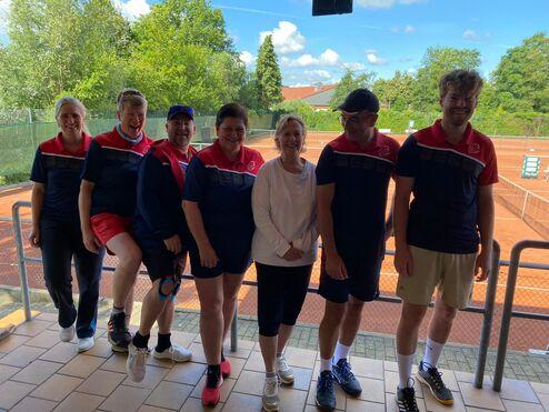 Am 07.07. musste unsere Hobby-Mixed-Mannschaft (v.l.: Carmen Vornholt, Vitor Serafim, Jürgen Bartmann, Dr. Klaas Feser, Renate Steiner, Ulla Voßkamp und Silvia Feser) in Datteln beim TG Datteln 1 unglücklich eine 3:1 Niederlage einstecken. Carmen und Vitor gewannen sicher mit 6:4 und 6:3.
