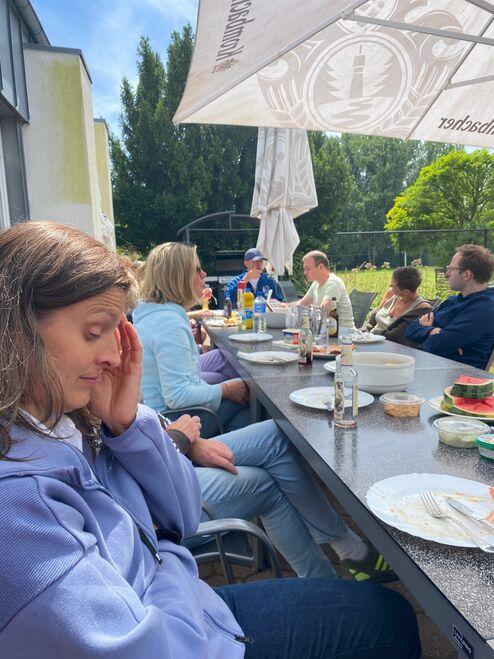 Anschließend saßen beide Teams noch für einen Plausch zum Tagesverlauf auf der Terrasse.