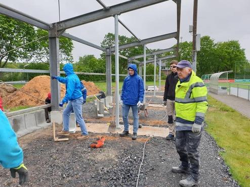 Ein besonderes Lob gilt auch Franz Bölker, der sich allein um das Zusammenschweißen der Unterkonstruktion gekümmert hat. Auch diese Konstruktion wurde aus dem nicht mehr benötigten Stützen und Trägern der alten Tribüne passend zusammengeschweißt. Tolle Leistung Franz – vielen Dank dafür!