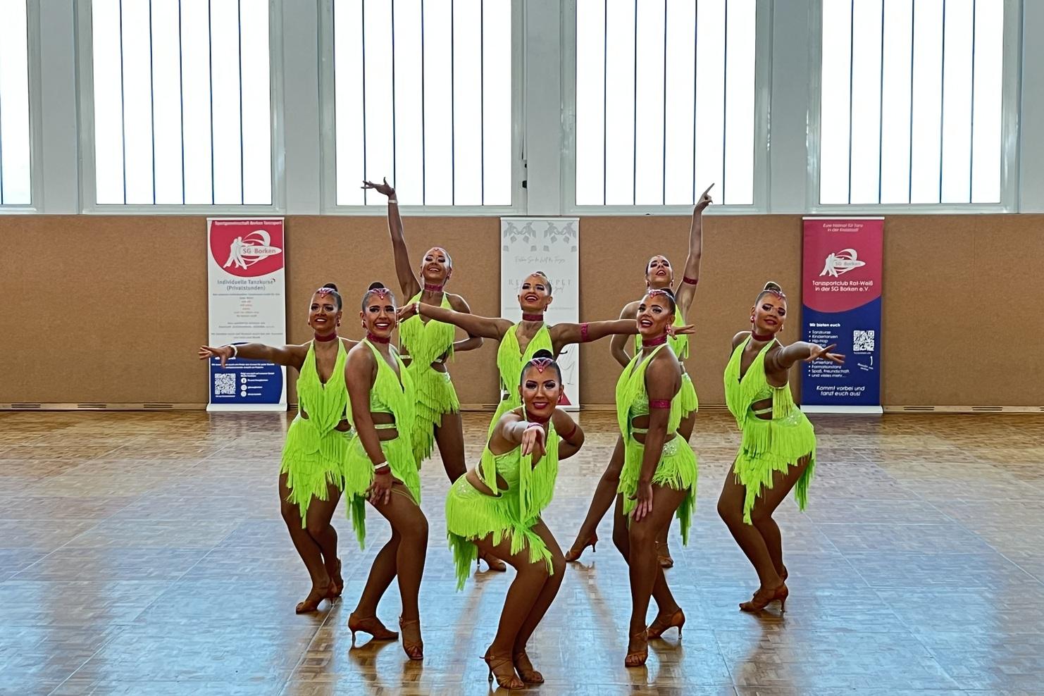 Die Erwartungen an die Soloformation „One Motion“ waren hoch – und die acht Tänzerinnen lieferten ab. Im entscheidenden Saisonturnier der 2. Bundesliga Süd/West Latein bewies das Team vor heimischem Publikum enorme Nervenstärke. Nach einer bereits soliden Vorrunde gelang den Borkenerinnen im Finale eine deutliche Steigerung. Mit einer mitreißenden Choreografie und technischer Präzision ertanzten sie sich erneut den ersten Platz.